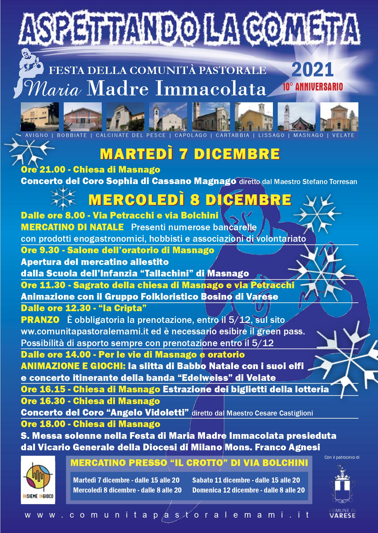 Presso la chiesa di Masnago la S. Messa solenne nella Festa di Maria Madre Immacolata presieduta dal Vicario Generale della Diocesi di Milano Mons. Franco Agnesi