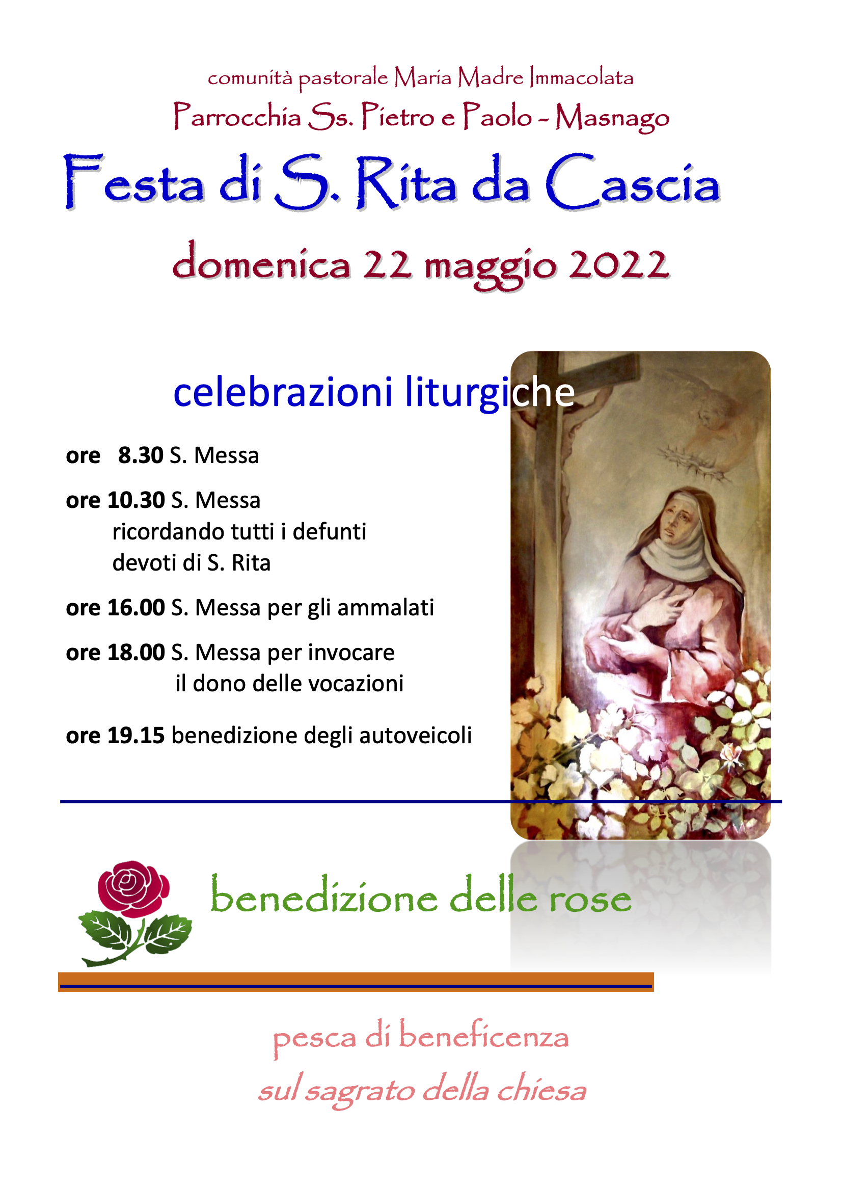 Torna l'appuntamento con la Festa di Santa Rita da Cascia, questa domenica, 22 maggio presso la parrocchia di Masnago.