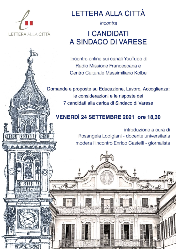 Lettera alla Città è una libera aggregazione di cristiani rappresentanti di parrocchie, associazioni e movimenti ecclesiali operanti nella città, che dal 2017 si confronta con le istituzioni cittadine ed i vari soggetti che a diverso titolo e motivo cercano di costruire il “bene comune”, e che dunque oggi guardano alle prossime elezioni amministrative come occasione propizia per lavorare insieme al futuro di Varese.